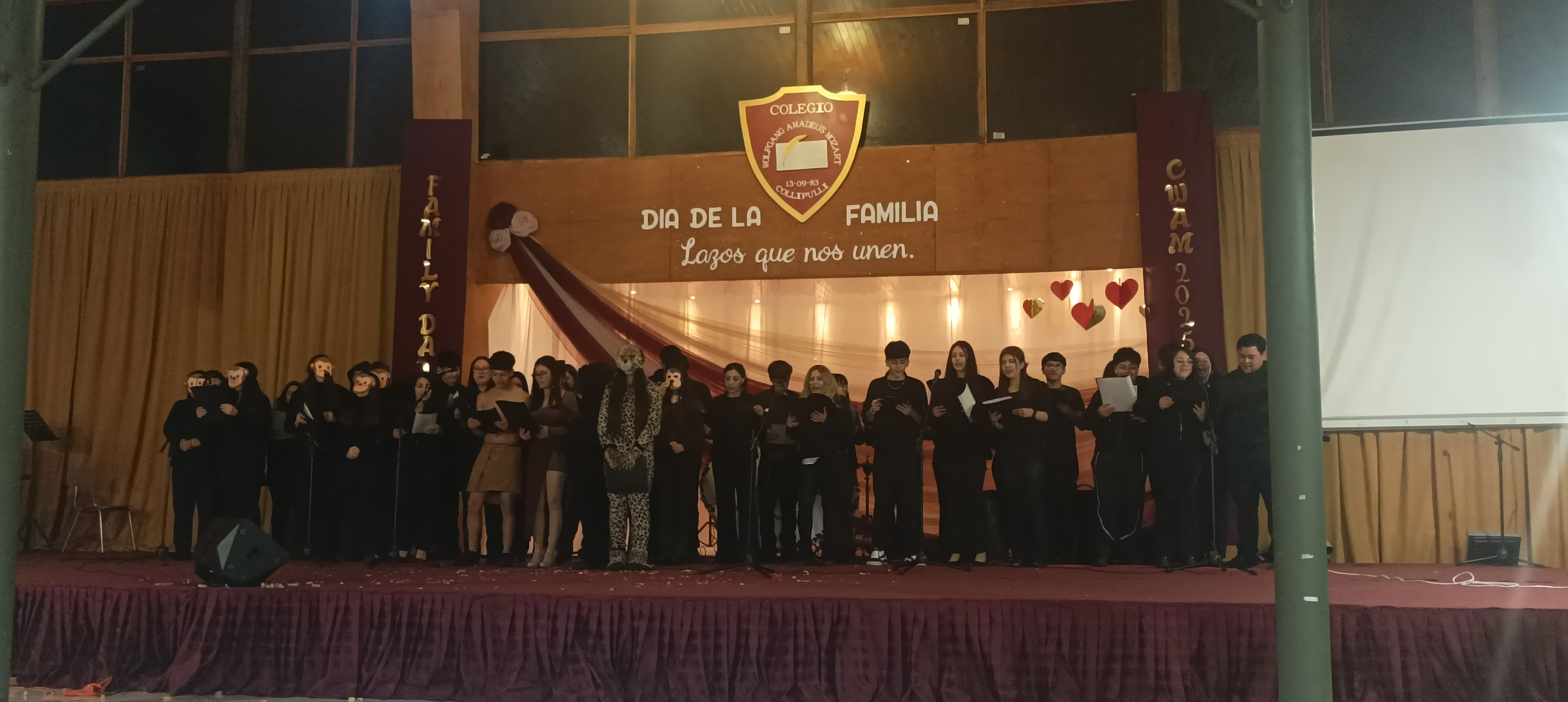 En esta actividad participaron 135 padres, madres y apoderados que representaros 26 cursos de los diferentes niveles de educación (Pre básica, básica y media). Ellos bailaron, cantaron, presentaron show de títeres y stand up junto a sus hijos, compañeros de curso y en algunos casos con sus profesoras jefes. Esta actividad tuvo como eje el amor en la familia que es el valor que nos impulsa a fortalecer lazos y celebrar la esencia de estar juntos.