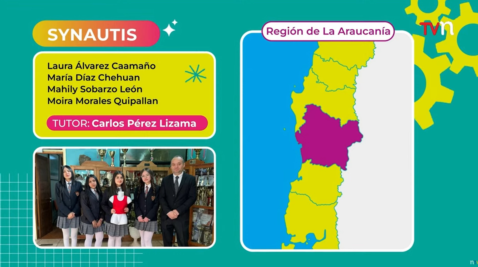 El equipo, integrado por las estudiantes Laura Álvarez, María José Díaz, Moira Morales y Mahily Sobarzo del 2° Medio Rinaldi, junto a su profesor guía Carlos Pérez Lizama, representó a la IX Región, donde previamente había obtenido el primer lugar regional, avanzando así a la etapa nacional de la competencia.